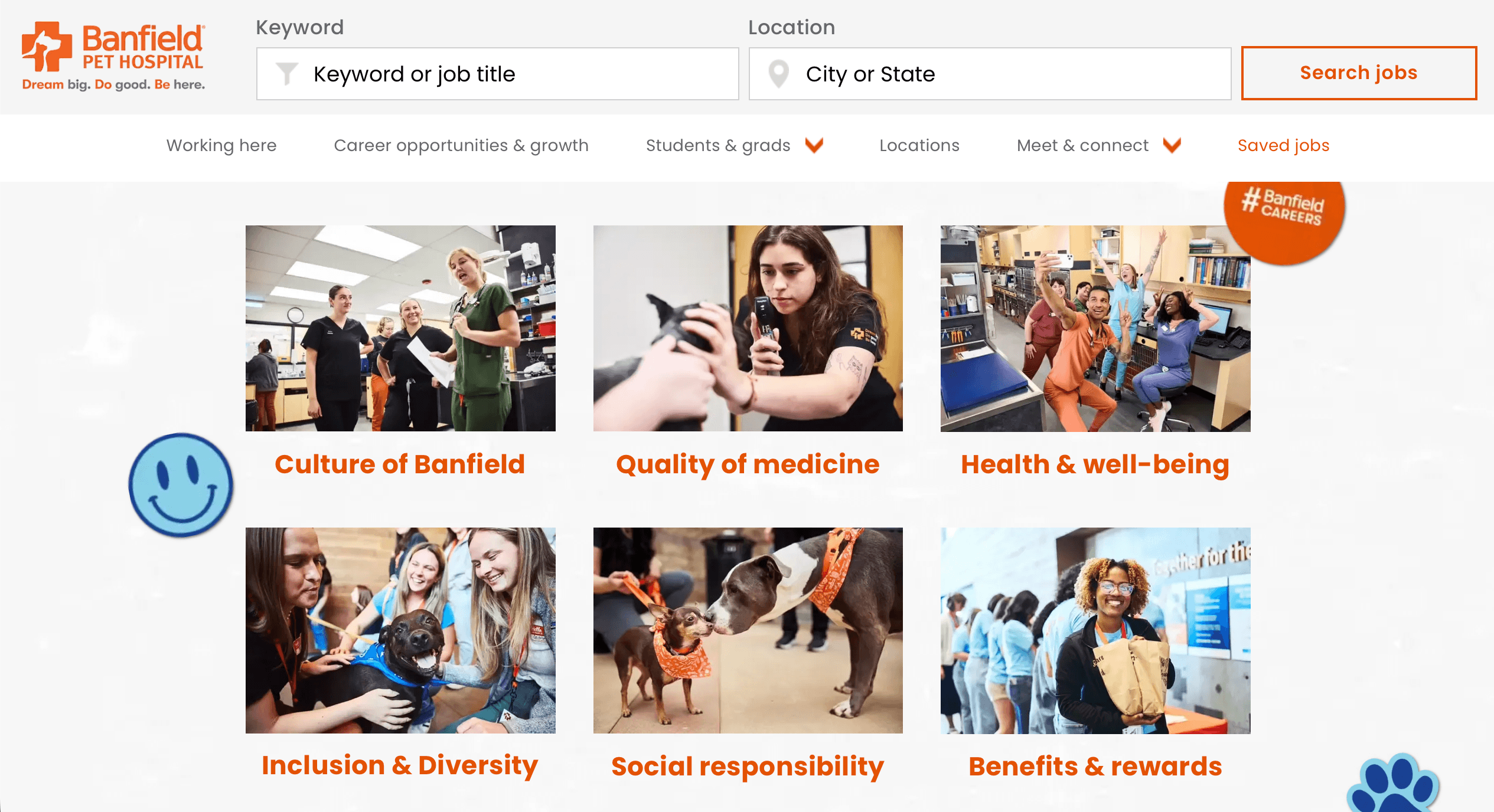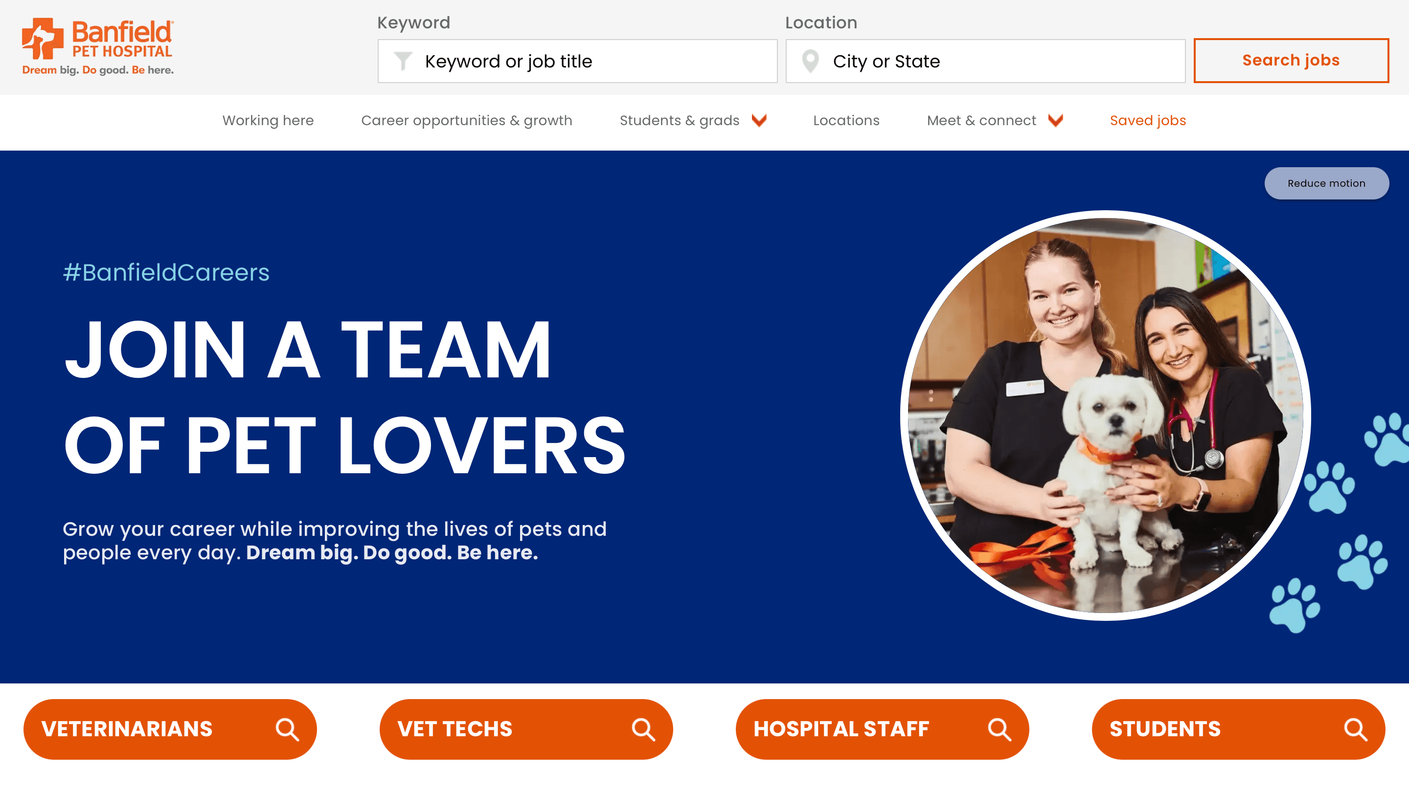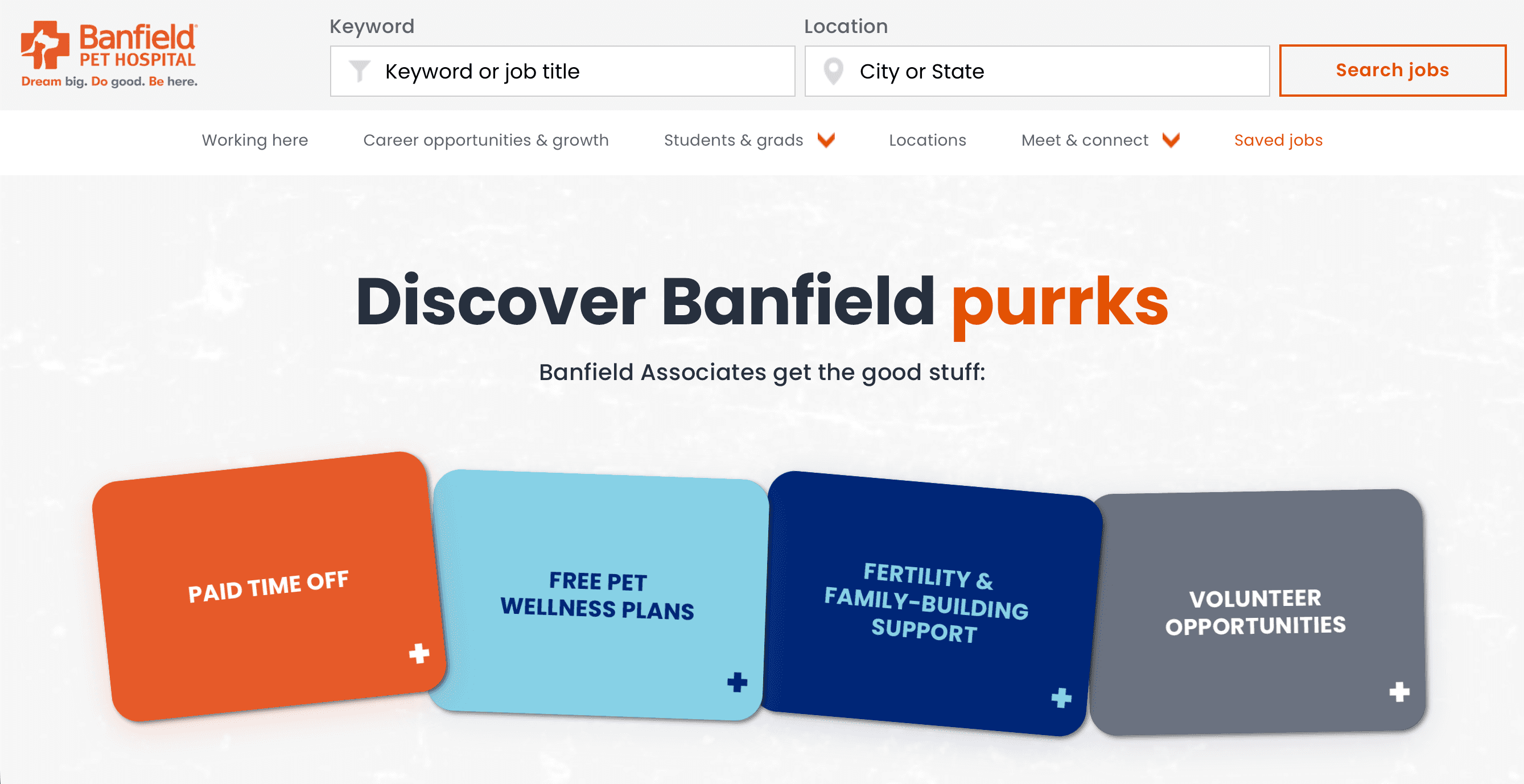 I led the creative direction and content strategy for the redesign of Banfield Pet Hospital’s careers website, aiming for a modern, user-focused experience that clearly communicated Banfield’s Employer Value Proposition (EVP) and supported high-volume talent acquisition needs.